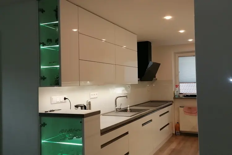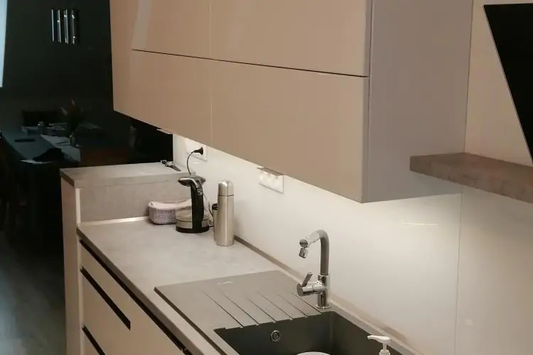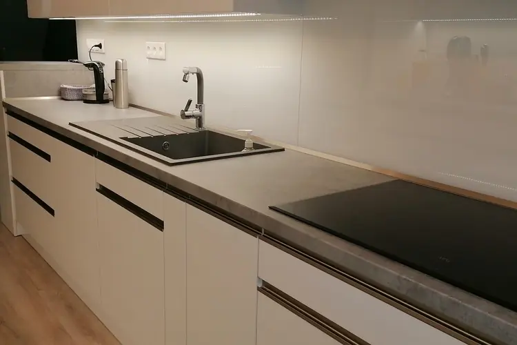 • RD Lichnov - bílá lesk, pracovní deska Egger beton Chicago
